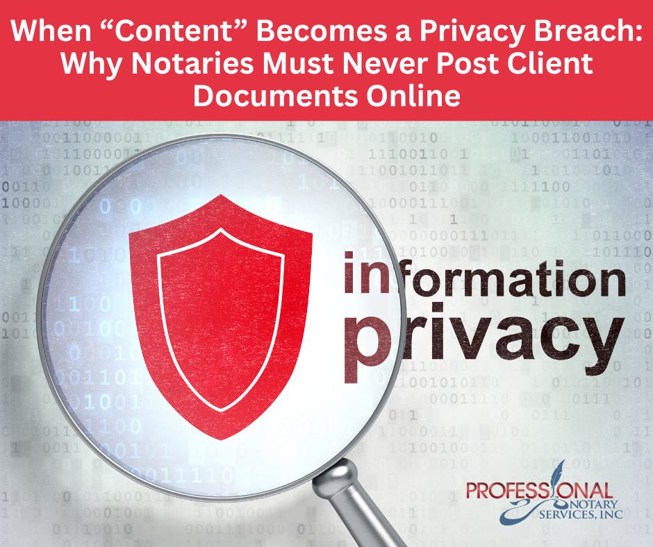 I saw something recently that should stop every notary in their tracks: A marriage certificate was posted online as “content.” Let’s be clear—this isn’t bold